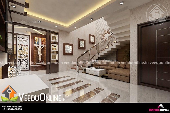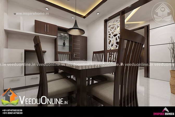 Kerala homes are designed with the most excellent and beautiful interior designs which are spectacular among the best ones. This stylish interior design is an extra ordinary one which makes out a distinctive design. Interior designing concerns itself with the best visual and ambient enhancement of an interior space which also seeks to optimize and harmonize the relevance to construct out the best environment to put on and improve our lifestyle. The practice of Interior designing enriches the pragmatic aspects of realizing buildings and structures, including construction administration, cost estimation and scheduling. Documentation produced by architects, plans and technical specifications, typically drawings, defines the structure and behavior of a building or other kind of system that is to be or has been constructed. The living and bedroom are very well designed and the kitchen along with work area are really spacious. This plan is designed in a manner for the latest interior designs. This plan is well executed by Inspire Homes. For further details contact the designer.