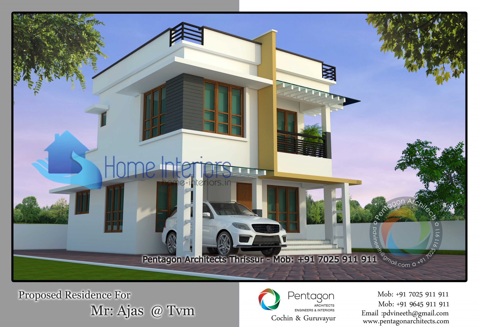 Total Area : 1343 Square Feet, Plot Area : 4 cents, Total Bedrooms : 3, Type : Double Floor, Style : Contemporary